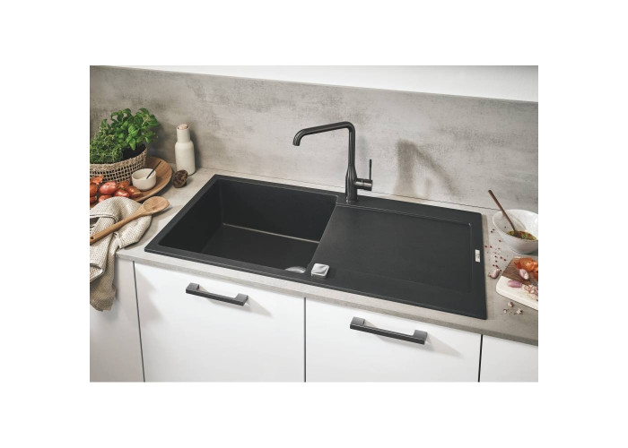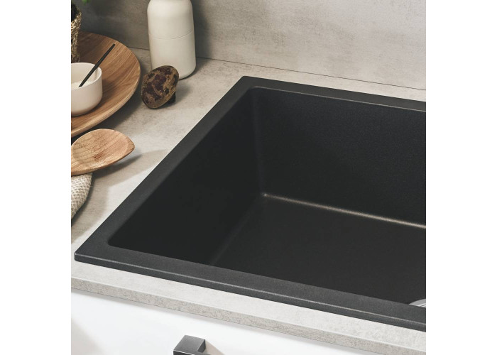 Кухонная мойка Grohe Sink 31645AP0 изготовлена из кварцевого композита, который состоит из 80% кварца и 20% акриловой смолы и отвердителя. Благодаря системе GROHE QuickFix установка мойки не займет много времени и не потребует дополнительного оборудования. Мойка выполнена с рабочей чашей, отверстием под смеситель и крылом для сушки посуды. Изоляция GROHE Whisper на нижней части мойки уменьшает шум, а автоматический мусоросборник с дистанционным управлением разрешает вытащить пробку.