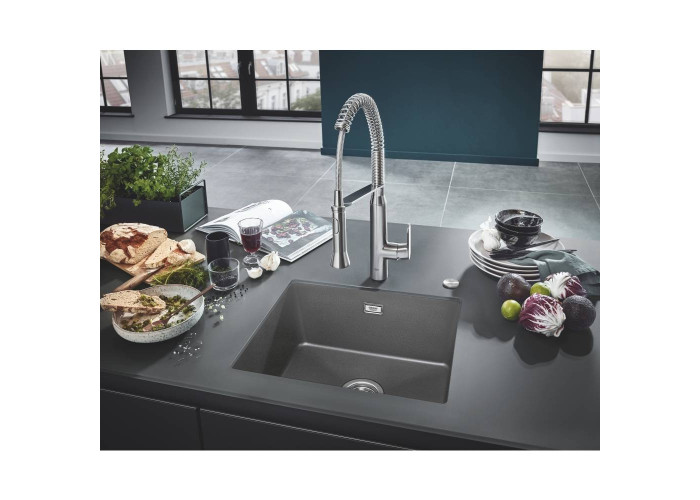 Кухонная мойка Grohe Sink 31654AT0 изготовлена из кварцевого композита, который состоит из 80% кварца и 20% акриловой смолы и отвердителя. Благодаря системе GROHE QuickFix установка мойки не займет много времени и не потребует дополнительного оборудования. Мойка выполнена в виде чаши с отверстием слив-перелив. Изоляция GROHE Whisper на нижней части мойки уменьшает шум, а отделка Granite Black не реагирует на ультрафиолетовое излучение, поэтому сохраняет свой глубокий оттенок надолго.