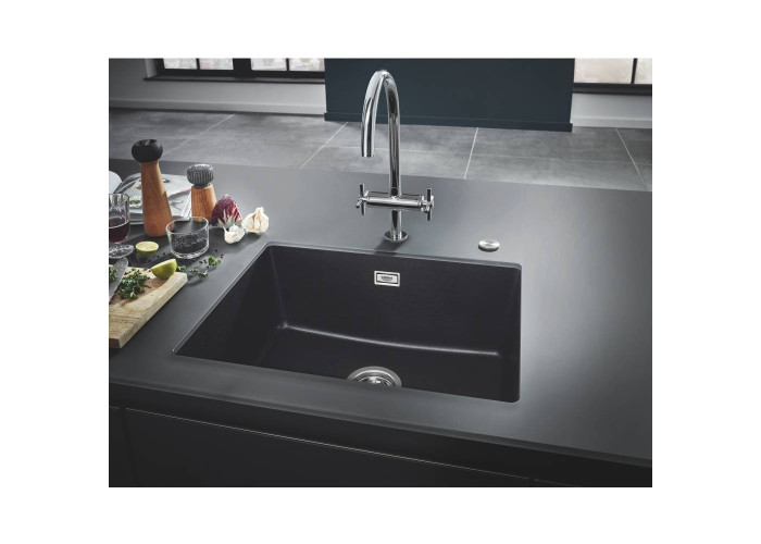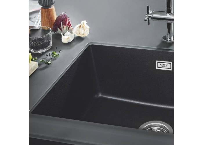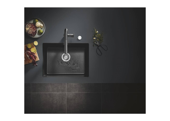 Кухонная мойка Grohe Sink 31655AP0 изготовлена из кварцевого композита, который состоит из 80% кварца и 20% акриловой смолы и отвердителя. Благодаря системе GROHE QuickFix установка мойки не займет много времени и не потребует дополнительного оборудования. Мойка выполнена в виде чаши с отверстием слив-перелив. Изоляция GROHE Whisper на нижней части мойки уменьшает шум, а отделка Granite Black не реагирует на ультрафиолетовое излучение, поэтому сохраняет свой глубокий оттенок надолго.