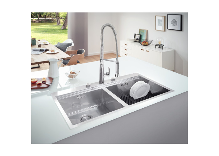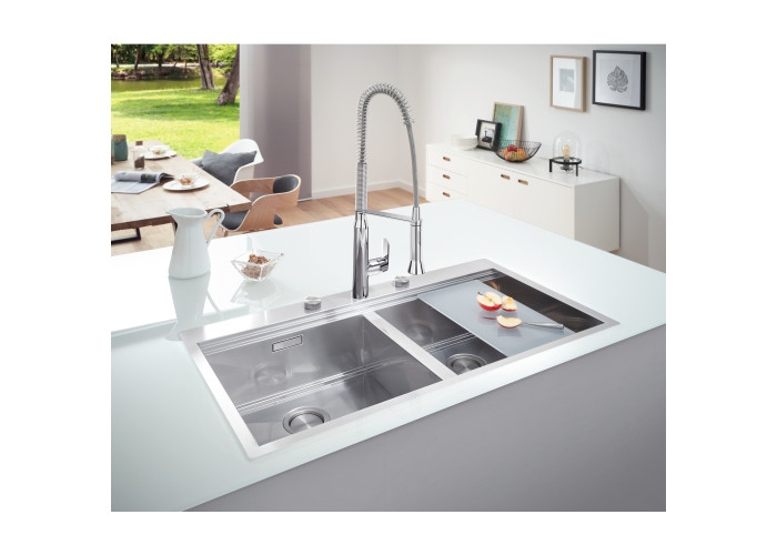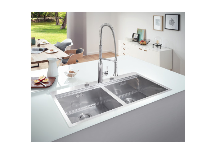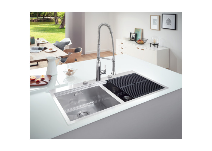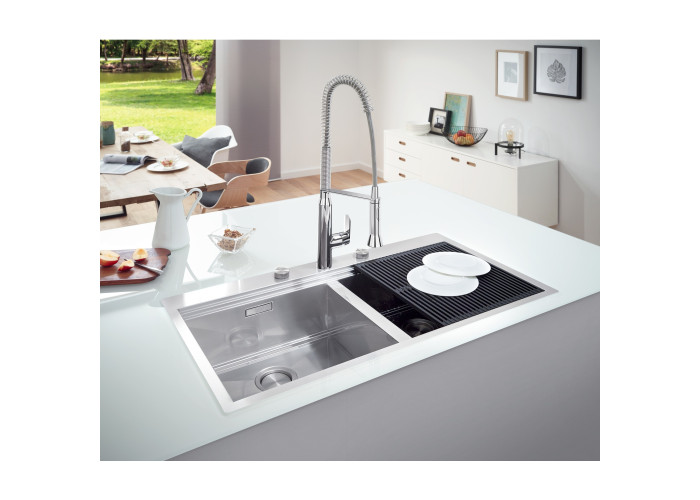 Кухонная мойка Grohe Sink 31584SD0 изготовлена из нержавеющей стали, что гарантирует ее надежность и привлекательность поверхности. Благодаря системе GROHE QuickFix установка мойки не займет много времени и не потребует дополнительного оборудования. Мойка выполнена в виде чаши с минималистичным переливом, отверстием под смеситель. Борта в виде двух ступеней позволяют устанавливать на мойку нарезочные доски или другую кухонную утварь. Глубина чаши делает мойку очень удобной и практичной.