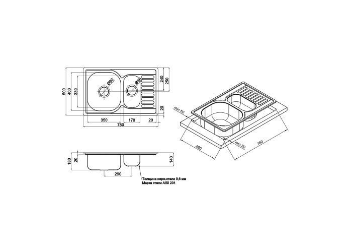 Мойка Imperial 7850 Satin изготовлена из высококачественной нержавеющей стали пищевой марки, поэтому изделие прослужит долгие годы. Так же стоит отметить исключительный дизайн который украсит любую кухню. Отменное качество и дизайн мойки позволят удовлетворить самые высокие требования и создать уют в вашем доме! Мойка выполнена с рабочей основной чашей, дополнительной для разморозки продуктов и ребристым крылом для сушки посуды. Монтируется врезным способом в отверстие в столешнице.