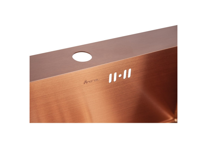 Мийка Imperial D5050BR PVD bronze Handmade 2.7/1.0 mm виготовлена з високоякісної нержавіючої сталі харчової марки, тому виріб прослужить довгі роки. Також варто відзначити винятковий дизайн, який прикрасить будь-яку кухню. Відмінна якість та дизайн мийки задовольнять найвибагливі побажання й створять затишок у вашому домі! Мийка виконана з основною прямокутною чашею з переливом та отвором під змішувач. На полірованій поверхні відсутні пори, тому вона не забруднюється, швидко миється.