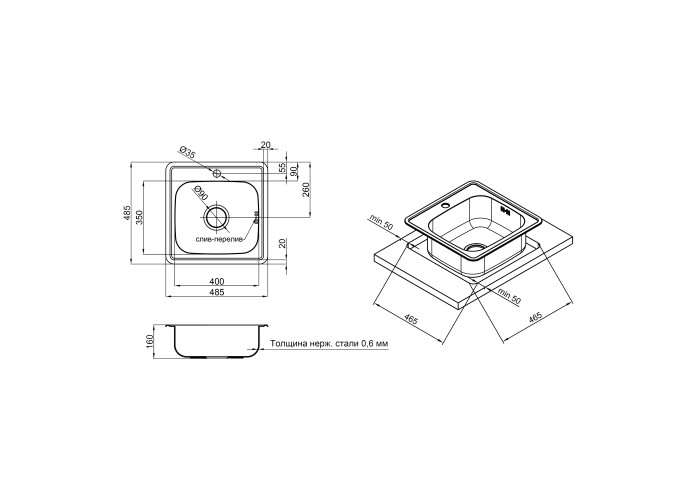 Кухонная мойка Lidz 4848 Satin 0,6 мм (LIDZ4848SAT06) изготовлена из нержавеющей стали пищевой марки, поэтому изделие прослужит долгие годы. Так же стоит отметить исключительный дизайн который украсит любую кухню. Отменное качество и дизайн мойки позволят удовлетворить самые высокие требования! Мойка выполнена с чашей и отверстием под смеситель, монтируется врезным способом в отверстие в столешнице.