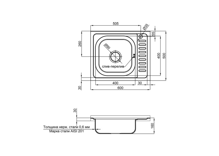 Мойка, сифон, слив/перелив.