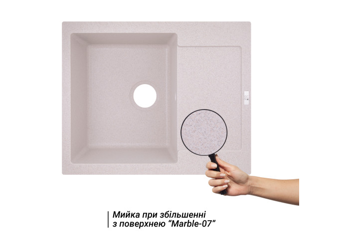 Кухонна мийка Lidz (MAR-07) 625x500/200 виготовлена ??з якісного штучного каменю, має матову поверхню. Відмінна якість і дизайн мийки дозволять задовольнити найвищі вимоги. Вона виконана з робочою чашею з отвором під злив-перелив і ребристим крилом для сушіння посуду або розморожування продуктів. Мийка монтується урізним способом в отвір в стільниці.
