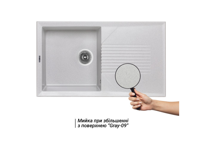 Кухонна мийка Lidz 860х500/240 GRA-09 (LIDZGRA09860500240) виготовлена ??з якісного штучного каменю, має матову поверхню і буде добре виглядати у поєднанні зі змішувачем того ж кольору. Виріб монтується урізним способом у підготовлений отвір в стільниці. Мийка виконана з робочою чашею та крилом, на ній є отвір злив-перелив та заготовка для отвору під змішувач. Відмінна якість та дизайн мийки задовольнять найвибагливі вимоги.