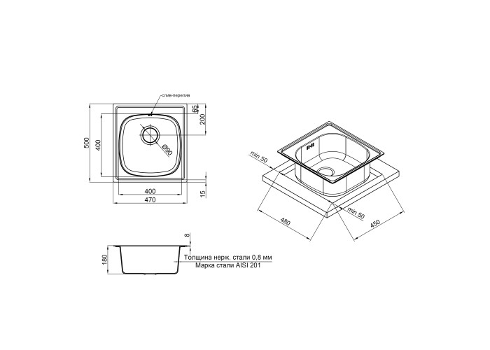 Мийка, сифон, слив / перелив, корзинчатий вентиль, ущільнювальна стрічка, кріплення.