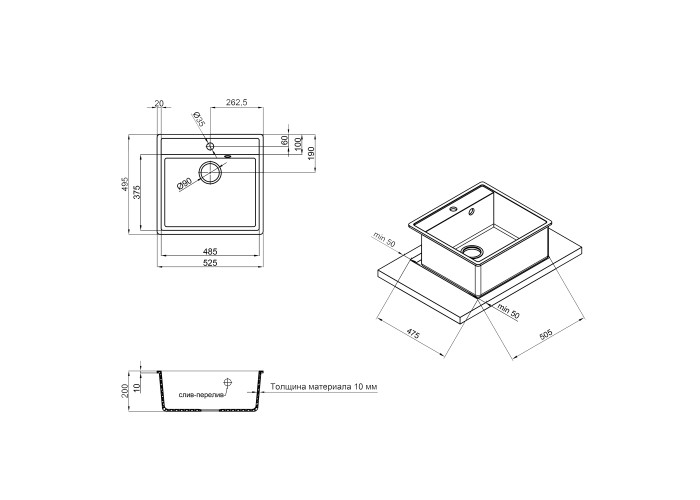 Кухонная мойка Qtap CS 5250 Black (QT5250BLA404) выполнена из качественного искусственного камня, имеет матовую поверхность, что придает ей привлекательный внешний вид. Изделие устойчиво к механическим повреждениям, а поверхность может выдержать температурные перепады. Такая мойка очищается от загрязнений без особых усилий. Она имеет вместительную прямоугольную чашу, отверстие под смеситель и отверстие под перелив. Изделие монтируется врезным способом в отверстие в столешнице.