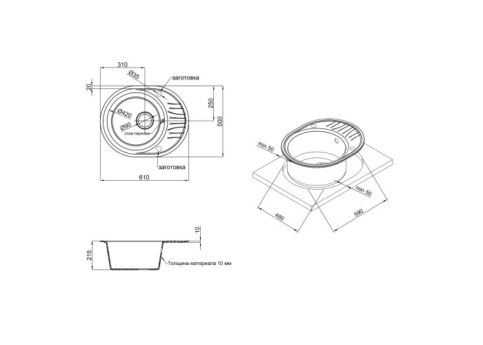 Кухонна мийка Qtap CS 6151 Black (QT6151BLA404) виготовлена ??з якісного штучного каменю з матовою поверхнею. Виріб з такого матеріалу досить стійкий до механічних пошкоджень, а поверхня здатна витримати температурні перепади. Така мийка досить просто очищується від забруднень. Вона має містку круглу чашу, зручне крило для сушки посуду, отвір під перелив. Виріб монтується урізним способом в отвір в стільниці.