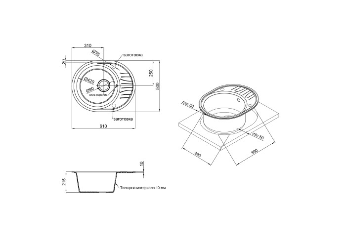 Кухонна мийка Qtap CS 6151 White (QT6151WHI650) виготовлена ??з якісного штучного каменю з матовою поверхнею. Виріб з такого матеріалу досить стійкий до механічних пошкоджень, а поверхня здатна витримати температурні перепади. Така мийка досить просто очищується від забруднень. Вона має містку круглу чашу, зручне крило для сушки посуду, отвір під перелив. Виріб монтується урізним способом в отвір в стільниці.