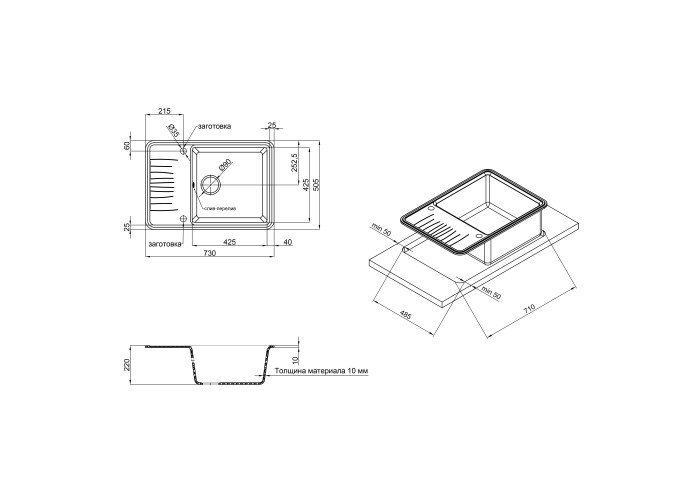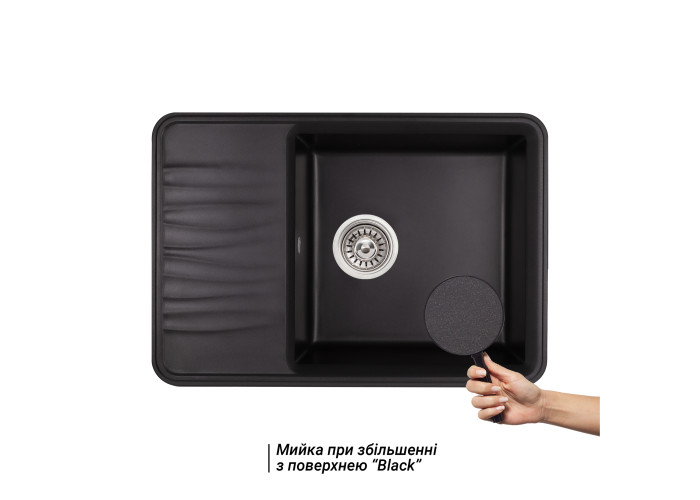 Кухонна мийка Qtap CS 7440 Black (QT7440BLA404) виготовлена ??з якісного штучного каменю з матовою поверхнею. Виріб з такого матеріалу досить стійкий до механічних пошкоджень, а поверхня витримує температурні перепади. Така мийка досить просто очищується від забруднень. Вона має містку прямокутну чашу, оригінальне крило для сушки посуду і отвір під перелив. Виріб монтується урізним способом в отвір в стільниці.