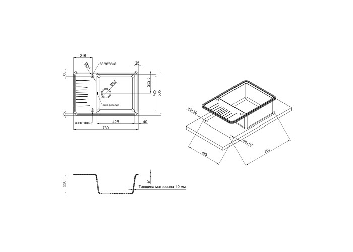 Кухонная мойка Qtap CS 7440 COF (QT7440COF551) изготовлена из качественного искусственного камня с матовой поверхностью. Изделие из такого материала достаточно устойчиво к механическим повреждениям, а поверхность выдерживает температурные перепады. Такая мойка достаточно просто очищается от загрязнений. Она имеет вместительную прямоугольную чашу, оригинальное крыло для сушки посуды и отверстие под перелив. Изделие монтируется врезным способом в отверстие в столешнице.