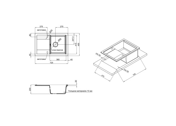 Кухонная мойка Qtap CS 7449 Beton (QT7449BET502) изготовлена из качественного искусственного камня с матовой поверхностью. Изделие из такого материала достаточно устойчиво к механическим повреждениям, а поверхность способна выдержать температурные перепады. Такая мойка достаточно просто очищается от загрязнений. Она имеет вместительную прямоугольную чашу, универсальное крыло для сушки посуды и отверстие под перелив. Изделие монтируется врезным способом в отверстие в столешнице.