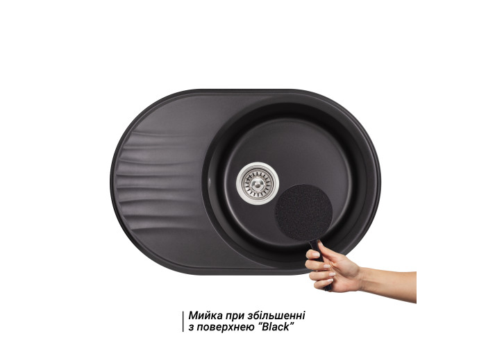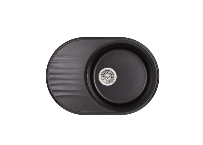 Кухонна мийка Qtap CS 7451 Black (QT7451BLA404) виконана з штучного каменю, має матову поверхню, що надає їй привабливий зовнішній вигляд. Виріб стійкий до механічних пошкоджень, а поверхня може витримати температурні перепади. Така мийка очищається від забруднень без особливих зусиль. Вона має містку круглу чашу, універсальне крило для сушки продуктів і посуду і отвір під перелив. Виріб монтується урізним способом в отвір в стільниці.
