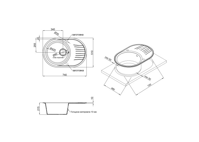 Кухонна мийка Qtap CS 7451 Grey (QT7451GRE471) виконана з штучного каменю, має матову поверхню, що надає їй привабливий зовнішній вигляд. Виріб стійкий до механічних пошкоджень, а поверхня може витримати температурні перепади. Така мийка очищається від забруднень без особливих зусиль. Вона має містку круглу чашу, універсальне крило для сушки продуктів і посуду і отвір під перелив. Виріб монтується урізним способом в отвір в стільниці.