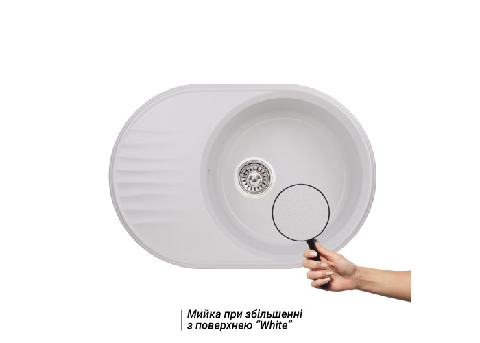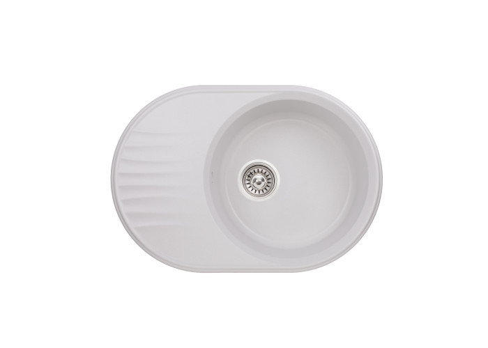Кухонна мийка Qtap CS 7451 White (QT7451HI650) виконана з штучного каменю, має матову поверхню, що надає їй привабливий зовнішній вигляд. Виріб стійкий до механічних пошкоджень, а поверхня може витримати температурні перепади. Така мийка очищається від забруднень без особливих зусиль. Вона має містку круглу чашу, універсальне крило для сушки продуктів і посуду і отвір під перелив. Виріб монтується урізним способом в отвір в стільниці.