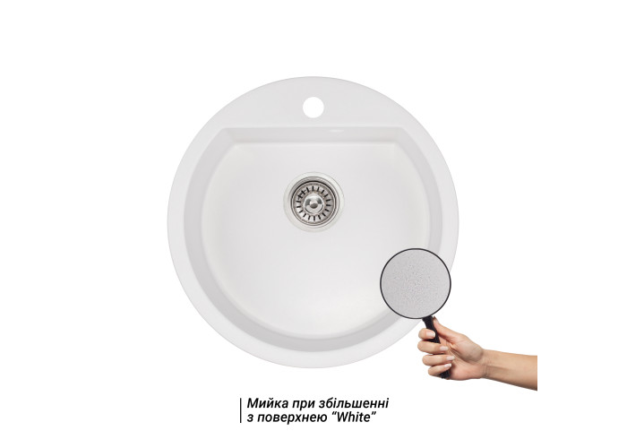 Кухонна мийка Qtap CS D510 White (QTD510WHI650) виконана з якісного штучного каменю, має матову поверхню, що надає їй привабливий зовнішній вигляд. Виріб стійкий до механічних пошкоджень, а поверхня може витримати температурні перепади. Така мийка очищується від забруднень без особливих зусиль. Вона має містку круглу чашу, отвір під змішувач і отвір під перелив. Виріб монтується урізним способом в отвір в стільниці.