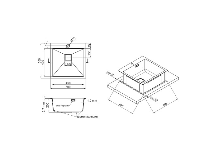 Кухонная мойка Qtap DK5050 2.7/1.0 мм (QTDK50502710) изготовлена из высококачественной нержавеющей стали пищевой марки, поэтому изделие прослужит долгие годы. Стоит отметить современный дизайн который украсит любую кухню и позволит удовлетворить самые высокие требования. Мойка выполнена в виде квадратной чаши, монтируется интегрированным способом. Матовая поверхность достаточно легко очищается.