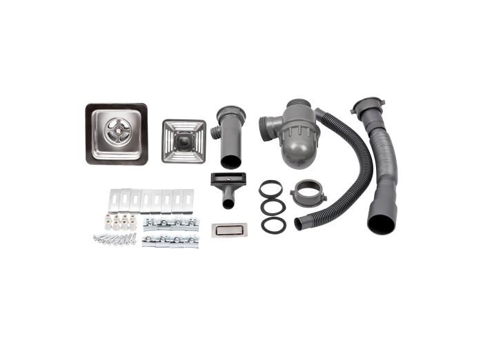 Мойка, сифон, слив/перелив, корзинчатый вентиль, крепежи.