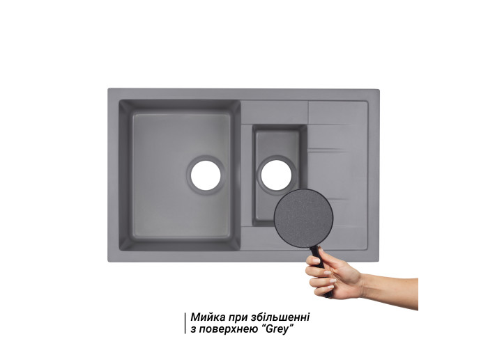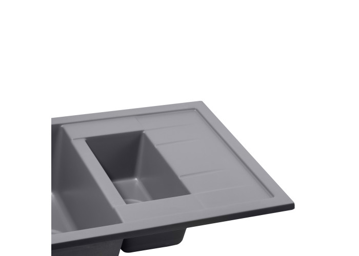 Кухонна мийка Qtap CS 7648 Grey (QT7648GRE471) виконана з якісного штучного каменю, має матову поверхню, що надає їй привабливий зовнішній вигляд. Виріб стійкий до механічних пошкоджень, а поверхня здатна витримати температурні перепади. Така мийка очищується від забруднень без особливих зусиль. Вона має містку основну і невелику додаткову чашу, а також отвір під перелив. Виріб монтується урізним способом в отвір в стільниці.