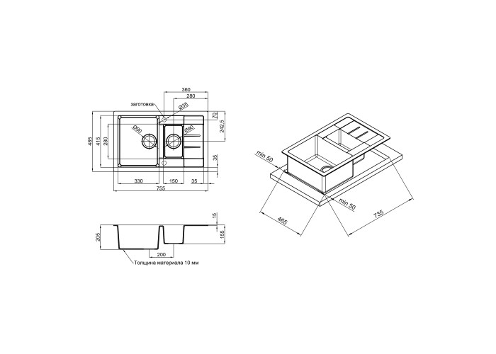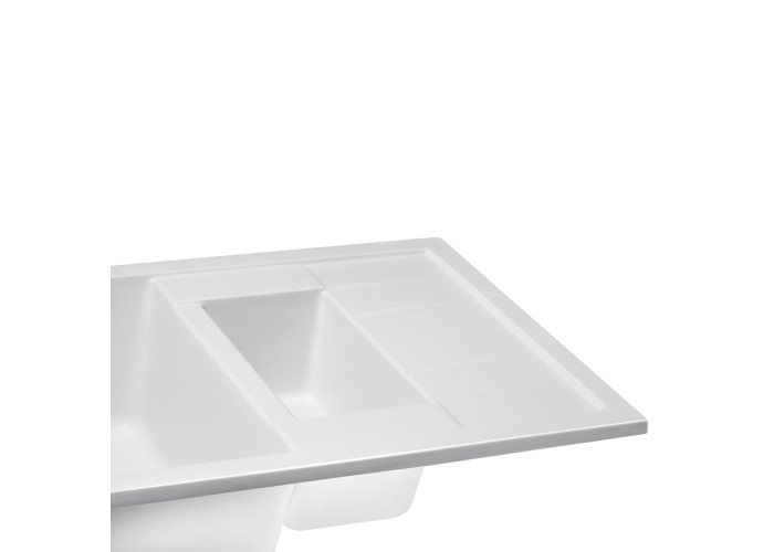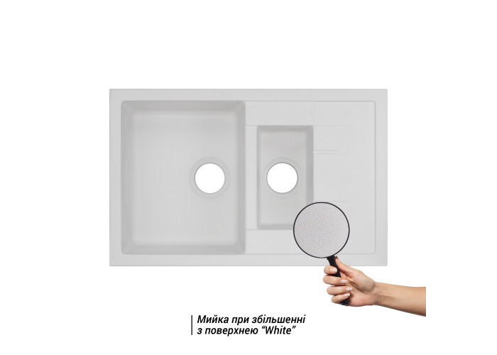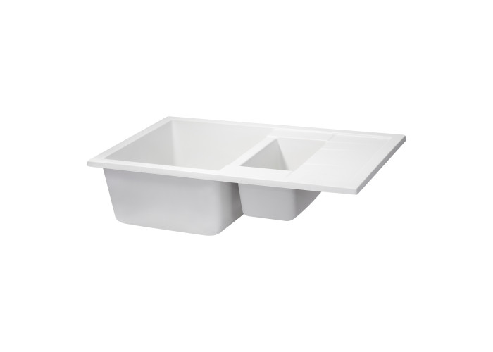 Кухонна мийка Qtap CS 7648 White (QT7648WHI650) виконана з якісного штучного каменю, має матову поверхню, що надає їй привабливий зовнішній вигляд. Виріб стійкий до механічних пошкоджень, а поверхня здатна витримати температурні перепади. Така мийка очищується від забруднень без особливих зусиль. Вона має містку основну і невелику додаткову чашу, а також отвір під перелив. Виріб монтується урізним способом в отвір в стільниці.