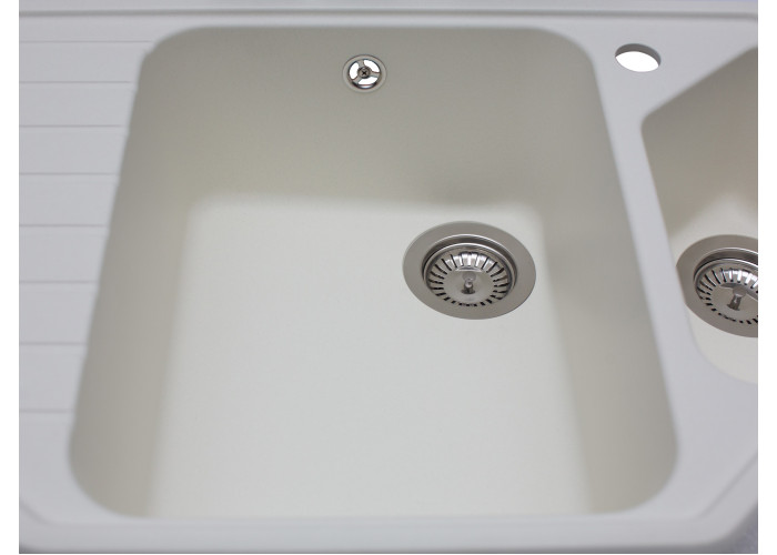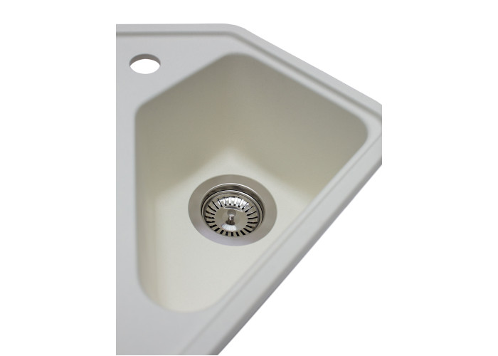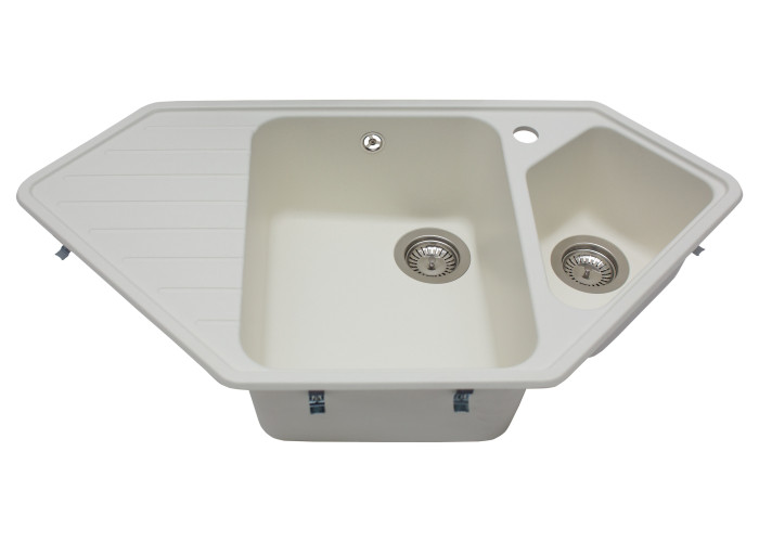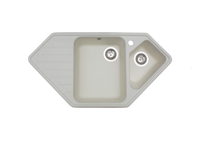 Кухонна мийка з кварцевого піску Tirion призначена для розміщення в кутку кухні. Мийка має центральну містку чашу та одну невелику додаткову, в якій ви можете мити фрукти, столові прилади. Так само мийка має зручне крило для посуду.
