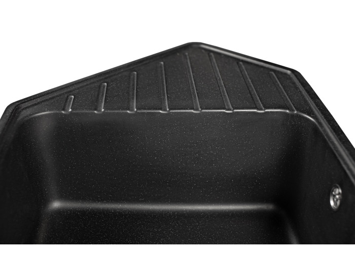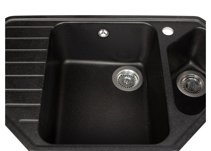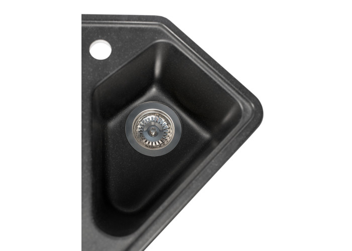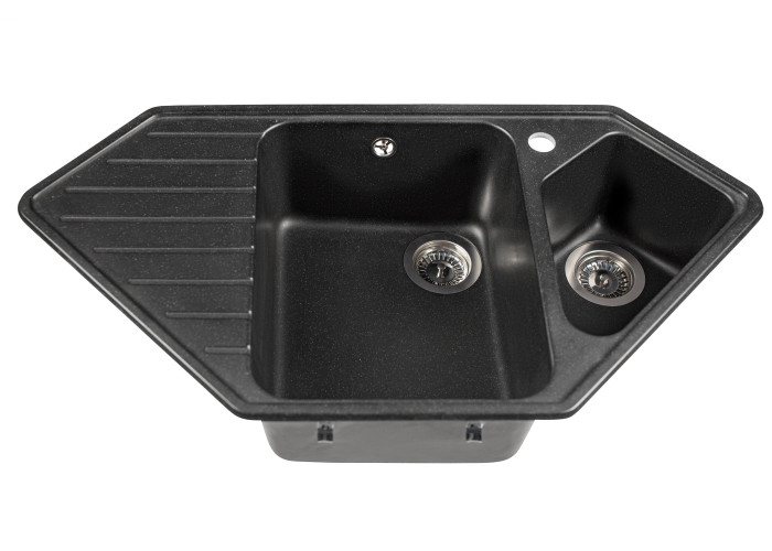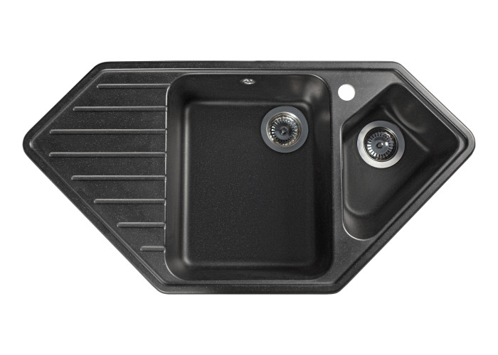 Кухонна мийка з кварцевого піску Tirion призначена для розміщення в кутку кухні. Мийка має центральну містку чашу та одну невелику додаткову, в якій ви можете мити фрукти, столові прилади. Так само мийка має зручне крило для посуду.