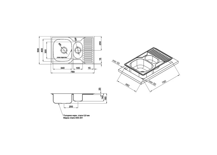Кухонна мийка ULA 7301 ZS Satin 08 виготовлена з високоякісної нержавіючої сталі харчової марки, тому прослужить довгі роки. Вона сертифікована, легко переносить вплив окропу та пари температурою до 140°С. Матова поверхня гладка, швидко миється та завжди має привабливий вигляд. Виріб виконаний з основною чашею, додатковою для розморожування продуктів та ребристим крилом для сушіння посуду. Монтується урізним способом в отвір в стільниці.
