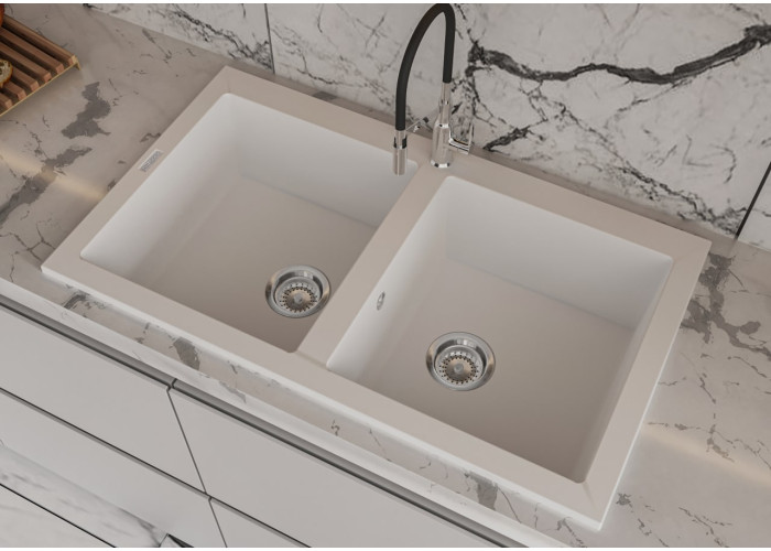 Кухонна мийка з двома однаковими прямокутними чашами. Westeros - дуже практична і містка модель від українського виробника Miraggio. Основний матеріал - кварцовий пісок, розмір 870*500*199 мм.
