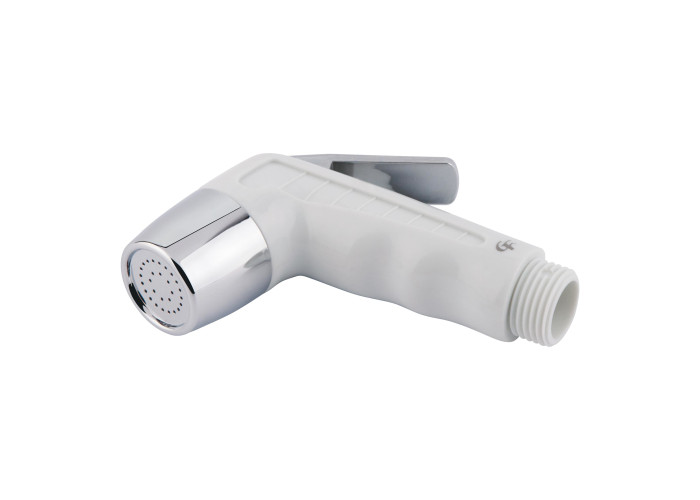 Лейка для гигиенического душа GF (CRM)-SH-111 выполнена из пластика серого цвета с углублениями для пальцев. На ручку нанесен фирменный логотип производителя. Лейка монтируется без особых усилий и дополнительных подручных средств. Она компактная, не займет много места, поэтому подойдет даже для маленьких помещений. Подача воды происходит только при нажатии на хромированный клапан.