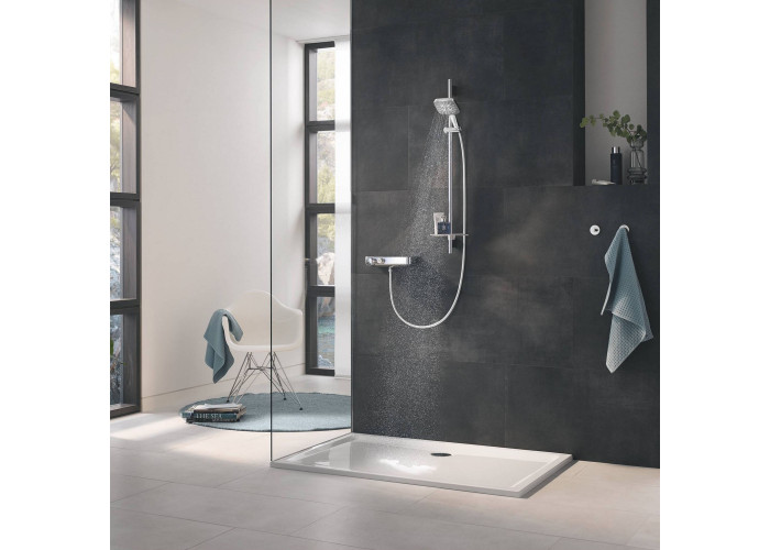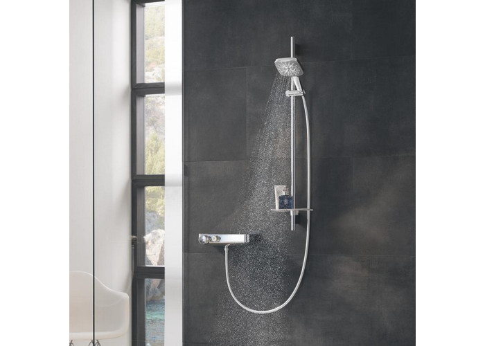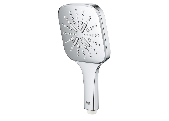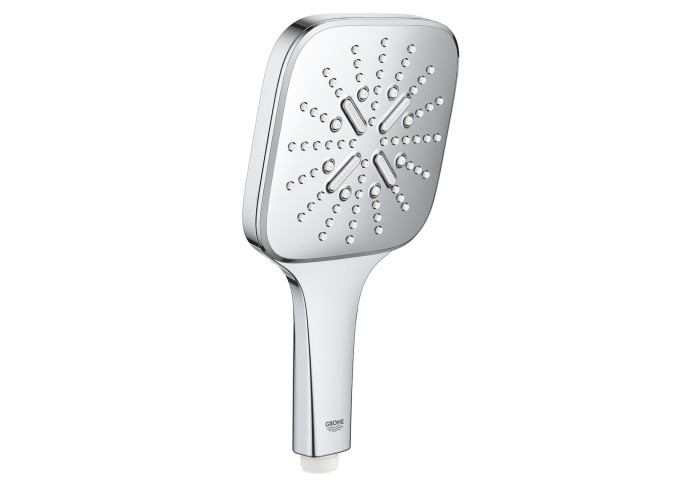 Лійка для ручного душу Grohe Rainshower Smartactive Cube 130 26550000 виконана з пластика з хромованим корпусом, що стійкий до корозії і зносу. На виріб завдано фірмовий логотип виробника. Лійка монтується без особливих зусиль і додаткових підручних засобів до шлангу з універсальним діаметром підключення 1/2". В ній передбачено три типи струменя, вибір режиму розпилення здійснюється одним дотиком пальця на задній частині лійки.