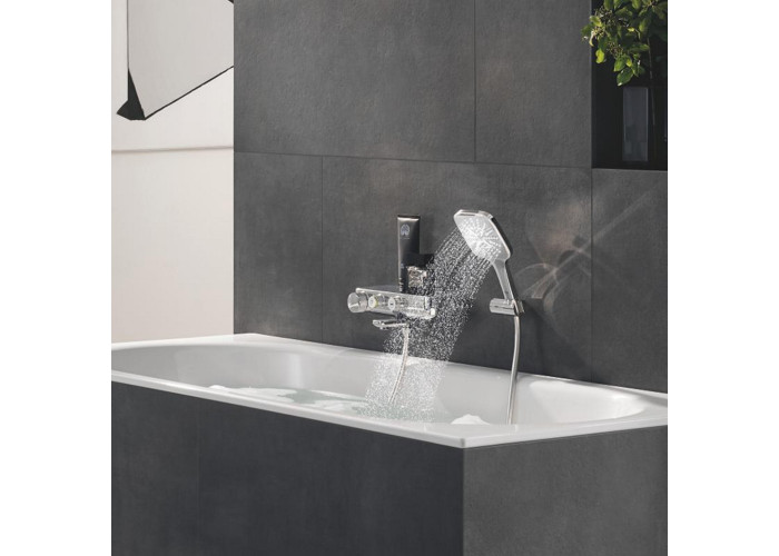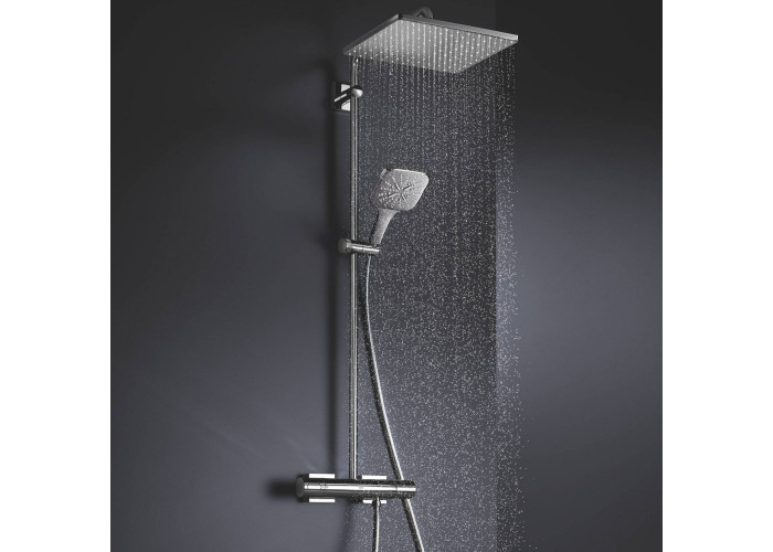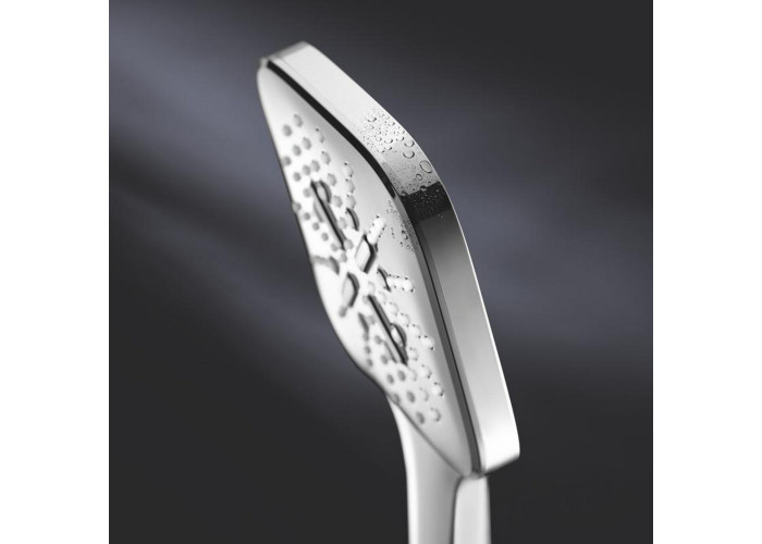 GROHE SpeedClean - запобігання утворенню вапняних відкладень. GROHE DreamSpray - оптимальний розподіл води по кожній душовій форсунці. GROHE StarLight - хромоване покриття. GROHE Inner WaterGuide - запобігання нагріву поверхні лійки. GROHE Massage spray - масажний режим води. GROHE DripStop - не протікає ручний душ після припинення подачі води. GROHE SmartTip - вибір режиму струменя одним дотиком пальця на задній частині душа.