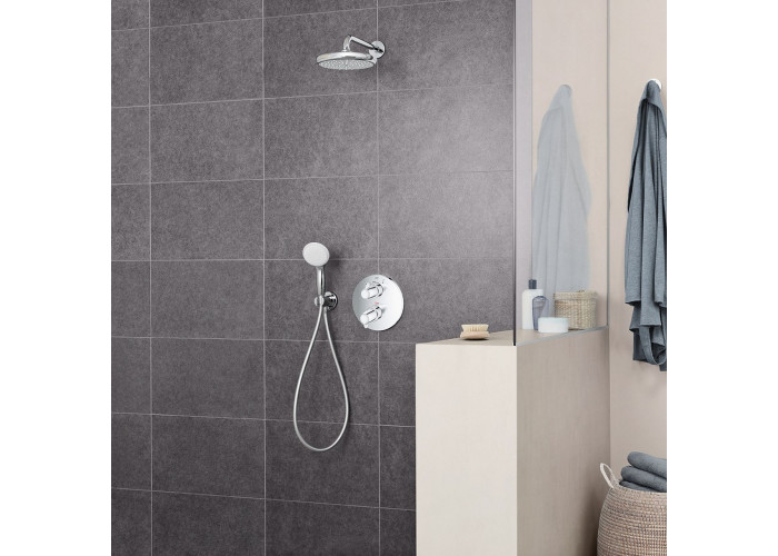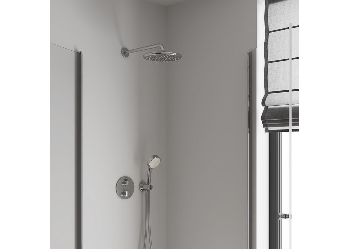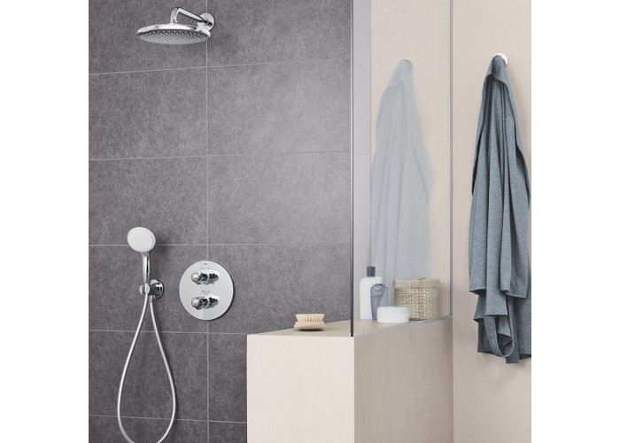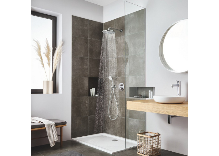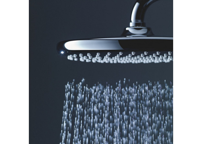 GROHE SpeedClean - запобігання утворенню вапняних відкладень. GROHE DreamSpray - оптимальний розподіл води по кожній душовій форсунці. GROHE StarLight - хромоване покриття. GROHE Inner WaterGuide - запобігання нагріву поверхні лійки. GROHE EcoJoy - водозберігаюча технологія. GROHE DripStop - не протікає ручний душ після припинення подачі води.