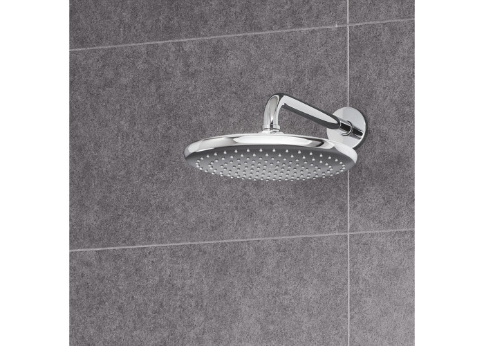Лійка для верхнього душа з тримачем Grohe Tempesta 250 26668000 виготовлені з пластику з хромованою поверхнею, що стійка до корозії і зносу. Лійка монтується без особливих зусиль і додаткових підручних засобів. У ній передбачено 1 тип струменя. Завдяки такій великій лійці душові процедури стануть більш комфортними.