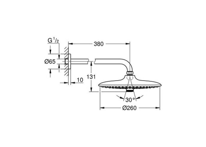 GROHE SpeedClean - предотвращение образования известковых отложений. GROHE DreamSpray - оптимальное распределение воды по каждой душевой форсунке. GROHE StarLight - хромированное покрытие. GROHE Inner WaterGuide - предотвращение нагрева поверхности лейки. GROHE SmartRain spray - экономный мягкий поток воды. GROHE Jet spray - упругий поток воды.