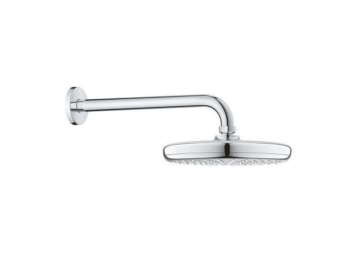 Лейка для верхнего душа Grohe Tempesta 210 26411000 и душевой кронштейн длиной 286 мм выполнены из латуни, которая устойчива к коррозии и износу. Лейка монтируется без особых усилий и дополнительных подручных средств. В ней предусмотрено один тип струи, где Rain - равномерный поток.