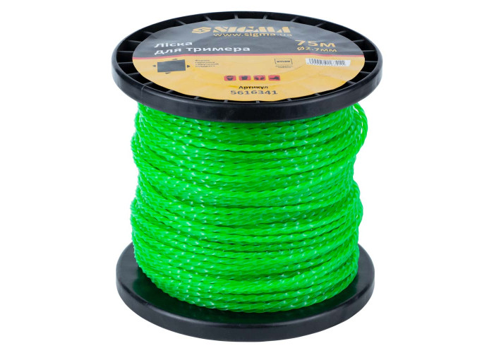 Леска для триммера крученый квадрат Ø2.7мм 75м котушка Sigma 5616341 предназначена для установки в катушки триммеров и служит для стрижки газонной травы и другой растительности. Изготовлена из высококачественного нейлона. По всей длине имеет одинаковую толщину. Обладает высокой гибкостью, крепкостью на разрыв и износоустойчивостью. Не расслаивается и не теряет своих качеств. Толщина лески подбирается под параметры триммера. Преимущества: форма сечения "крученый квадрат" подходит для грубой растительности; агрессивная форма режущей кромки позволяет значительно увеличить эффективность работы и повысить производительность; легко прорезает материал и менее травматична для растительности.