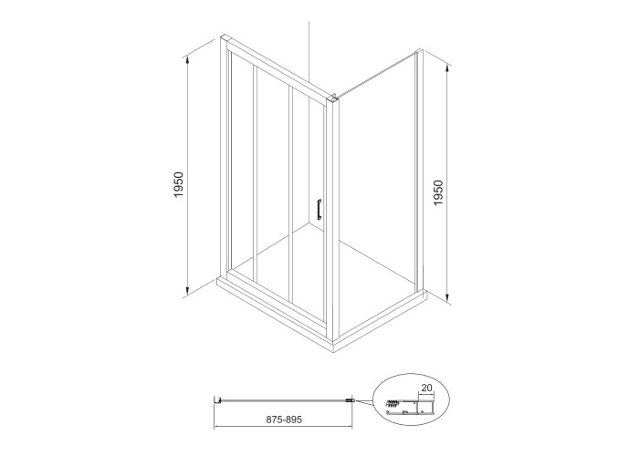 LEXO стенка боковая 90*195см для комплектации с дверью, прозрачное стекло 6мм, хром