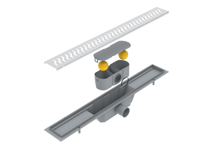 Линейный трап 800мм, система сухой затвор, с решеткой "волна"