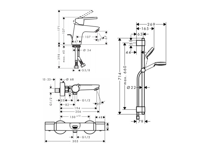LOGIS LOOP душевой набор с термостатом (71153000+15348000+ 27353400)