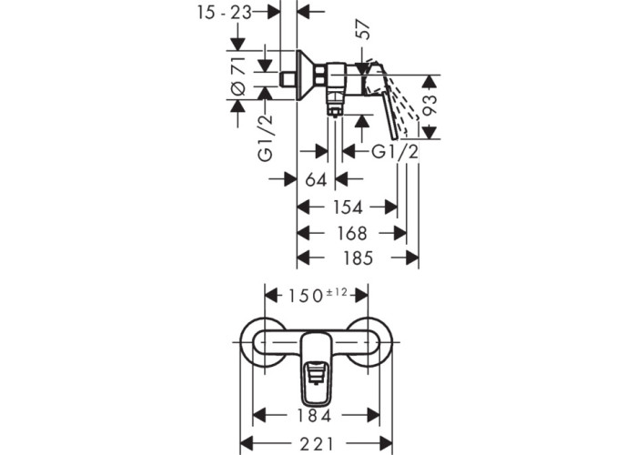 Logis Loop смеситель для душа, однорычажный Eco, настенный монтаж, латунь, цвет - хром.