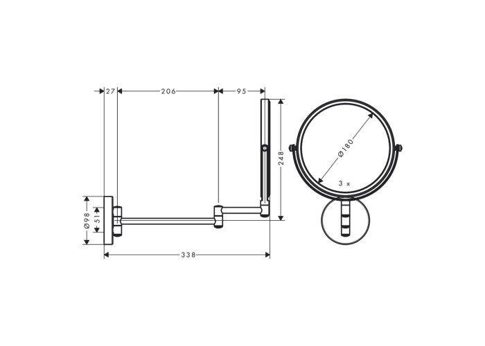 Logis зеркало для бритья, настенное, увеличение: в 3-раза, поворотный, наклоняемый, цвет - хром, металл.