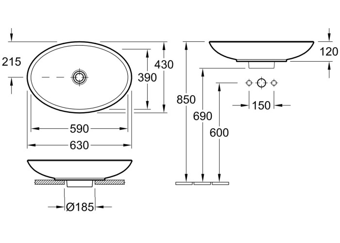 LOOP & FRIENDS умывальник, для установки на столешницу 63*43см