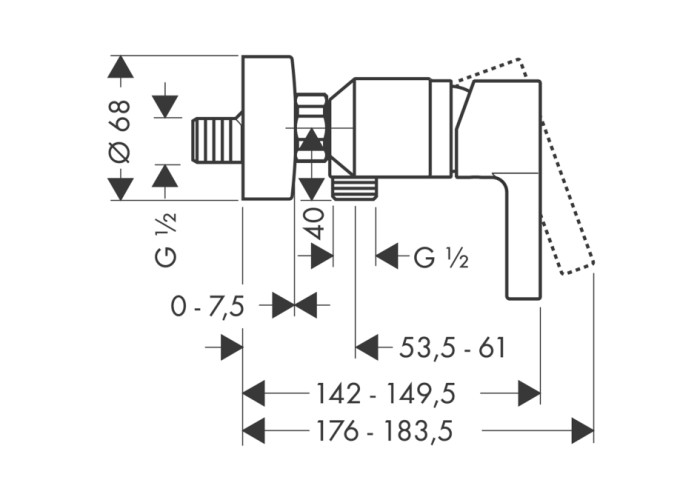 Metris S Смеситель для душа, однорычажный Тип соединения: S - соединение, расстояние по центрам: 150 mm ± 12 mm, расход воды: 22 л/мин, клапан обратного движения