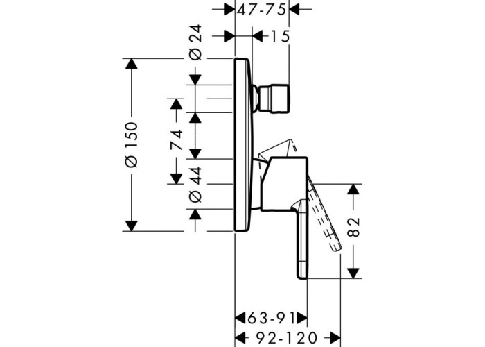 Смеситель скрытого монтажа с переключателем потока воды, однорычажный. Внешняя часть, в набор входят: рукоятка, гильза, розетка, переключатель, функциональный блок. Крепление рукоятки Boltic. Автоматическое переключение душ/ванна. Цвет покрытия - матовый хром.