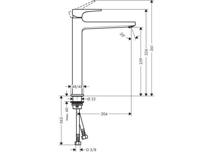 ComfortZone 260; вынос 204 мм; обычная струя; расход воды : 5 л/ мин; керамический узел смешивания; сливной гарнитур push-open G 1¼; регулируемое ограничение температуры; подходит для проточных водонагревателей
