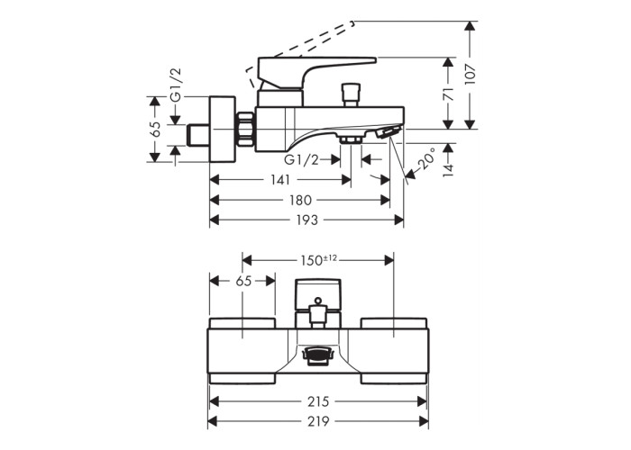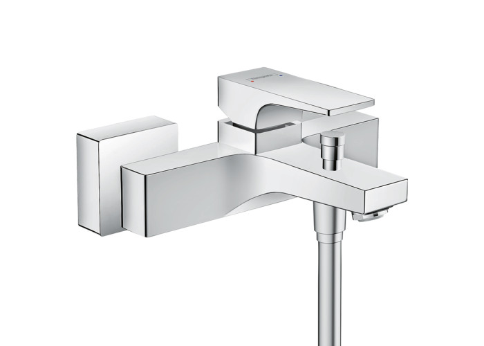 Metropol смеситель для ванны однорычажный, цвет - хром. Выступ 180 мм; вид соединения: S-образные эксцентрики; межосевое подключение: 150 мм ± 12 мм; обычная струя; расход воды при давлении 3 бар: 22 л / мин; керамический узел смешивания; регулируемое ограничение температуры; с переключателем вакуумного типа; клапан обратного тока воды; с шумопоглотителем; подходит для проточных водонагревателей.