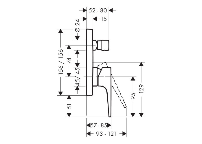 METROPOL смеситель для ванны, однорычажный, внешняя часть, на 2 потребителя