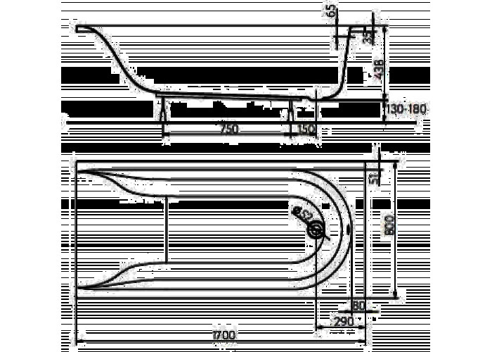 Ванна акриловая Коло-Дымер, с ножками и элементами крепления. Длина 1700 мм, ширина 800 мм, глубина 420 мм, объём 230 л. Для пристенного монтажа