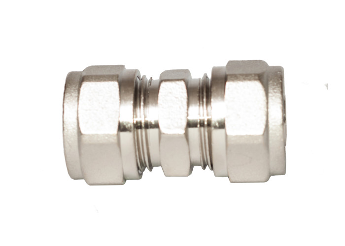 Муфта обжимная, диаметр 20 мм на 20 мм RSk Италия латунная никелированная. Обжимные -фитинги RSk предназначены для создания неразъемных соединений трубопроводов из металлополимерных труб (PEX-AL, PE-AL, PERT-AL). Для их производства используется высококачественная латунь CW617N. Готовая продукция имеет никелированное покрытие. Фитинги под обжим используются для создания систем водопроводов и отопления. Ассортимент бренда RSk состоит из муфт, тройников и угольников, в том числе и настенных сантехнических уголков. Представлены модели как соединительного типа, так и с переходом на наружную либо внутреннюю резьбу. Имеются как равнопроходные, так и редукционные (переходные) опрессовочные фитинги разных размеров (16-32).Данные фитинги соответствуют всем европейским нормам и стандартам качества, имеют подтверждающие документы и за надежность, качество и долговечность пользуются большой популярностью у клиентов.